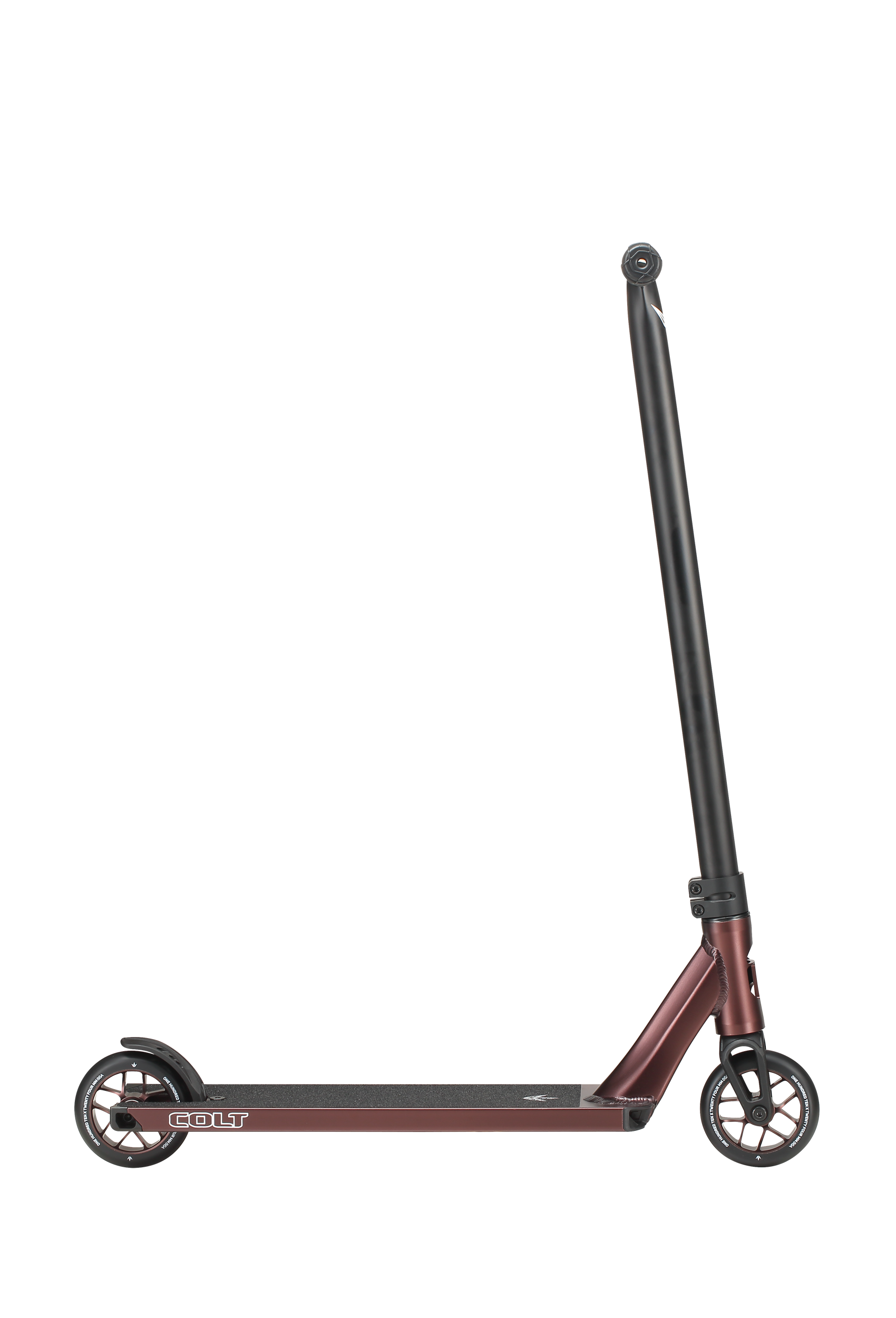 The ‘LITTLE WEAPON’ is growing up. Introducing the long-awaited COLT S6 coming in four fresh colourways: Bronze, Polished, Silver and Black. Built for a hybrid style of riding combining the best or Street & Park, this grown-up Colt generation is made to last but is still dynamic in performance This year we’ve raised the bar with this newest Colt release to ensure it has exceptional performance capabilities. This complete was tested by our world class team of professional riders. Series 6 features our new oversized chromoly Tension bars which incorporate a butted down tube to keep the scooter lightweight, while still maintaining the strength of its chromoly/steel construction. These bars measure in at a 520 x 60mm height (535mm wide inc barends) and come fit with the ultra-comfy TPR V2 hand grips. As a classic in the Colt line-up, the Envy 2 Bolt Oversized Clamp adds sleek design and reliable performance. Including the classic IHC Prodigy fork, compatible with scooter wheels up to 125 x 30mm and equipped with a IHC to HIC compression conversion kit to work with the oversized bar. Coming straight from the Colt’s big brother the Prodigy, another new addition to the sixth series is the low stack headset. As a more compact addition to this complete it also reduces the amount of headset parts you have. Lightweight performance is what the Colt S6 is all about, and the proof is in its parts. To maintain its speed, this complete is rolling on all-new Jet wheels and comes in at 110 x 24 mm wide and weighs only 205g, including the ABEC 9 bearings. The Colt S6’s lightweight capability has also been reduced by the introduction of EXTECH extrusion technology and a cut-out to the bottom of the deck. Its design is both stylish and functional with the new 83-degree head tube, updated box ends, and aggressive concave engineering to the top of the deck that feels super responsive. These new Colt S6 deck dimensions have been perfectly designed for hybrid riding, coming in at 5 x 19.5 inches long with just under 14 inches of foot space. The Little Weapon’s overall height (84cm/33”) and weight (3.5kg/7.7lb) is remarkably unique for a complete scooter that features box stands and a Chromoly T Bar style. Specifications Color Black Total Height 840mm/33" Total Length 677mm/26.65" Bar Height 600mm/23.6" Bar Width 520mm/20.5" Deck Length 495mm/19.5" Deck Width 127mm/5" Compression Type IHC/HIC Foot Space 349mm/13.75" Weight 3.45kgs/7.7lbs