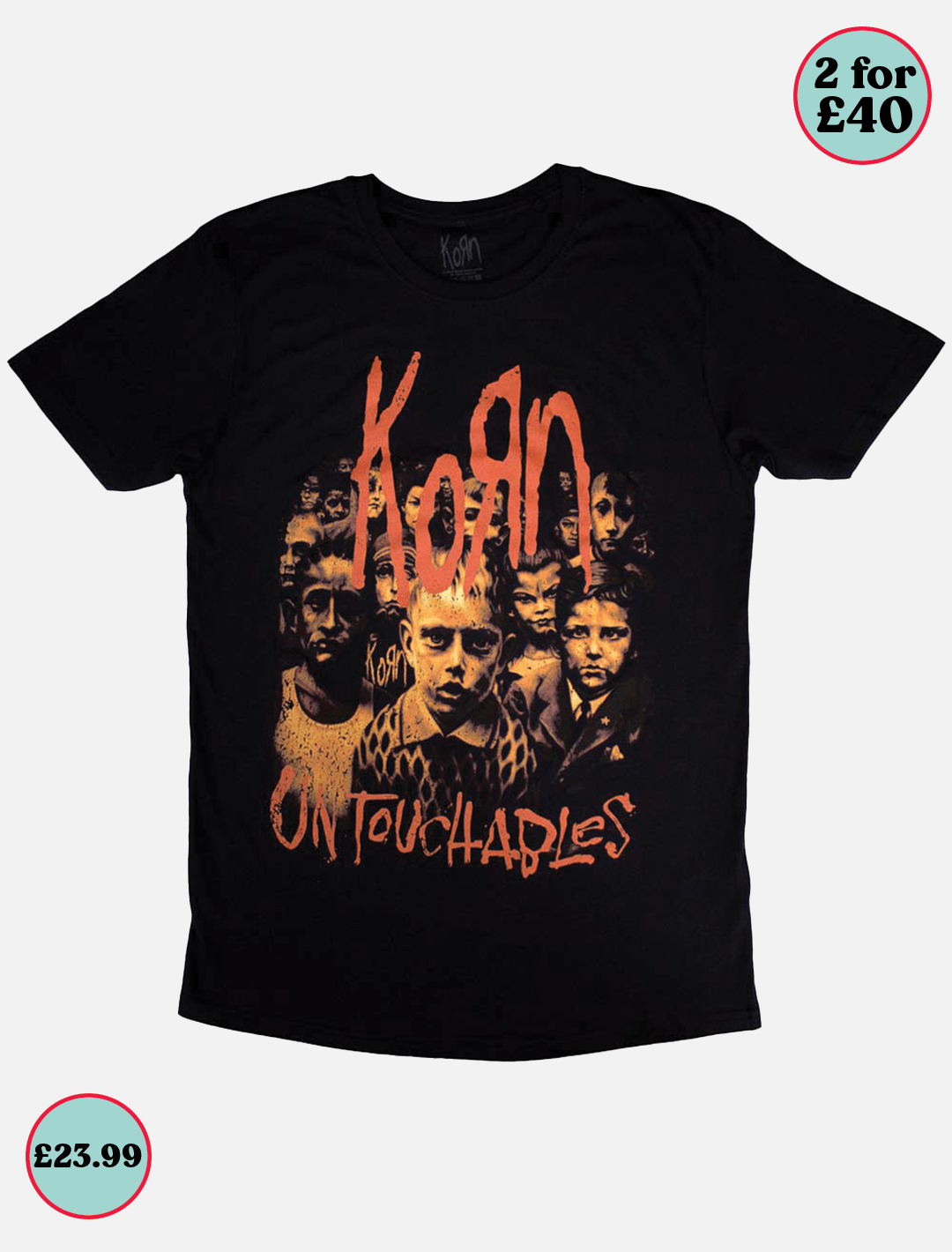 Officially Licensed Korn 100% Cotton T-Shirt in Black. Deal: Buy two Band / Artist T-Shirts for £40.00. Offer automatically applies to your cart.