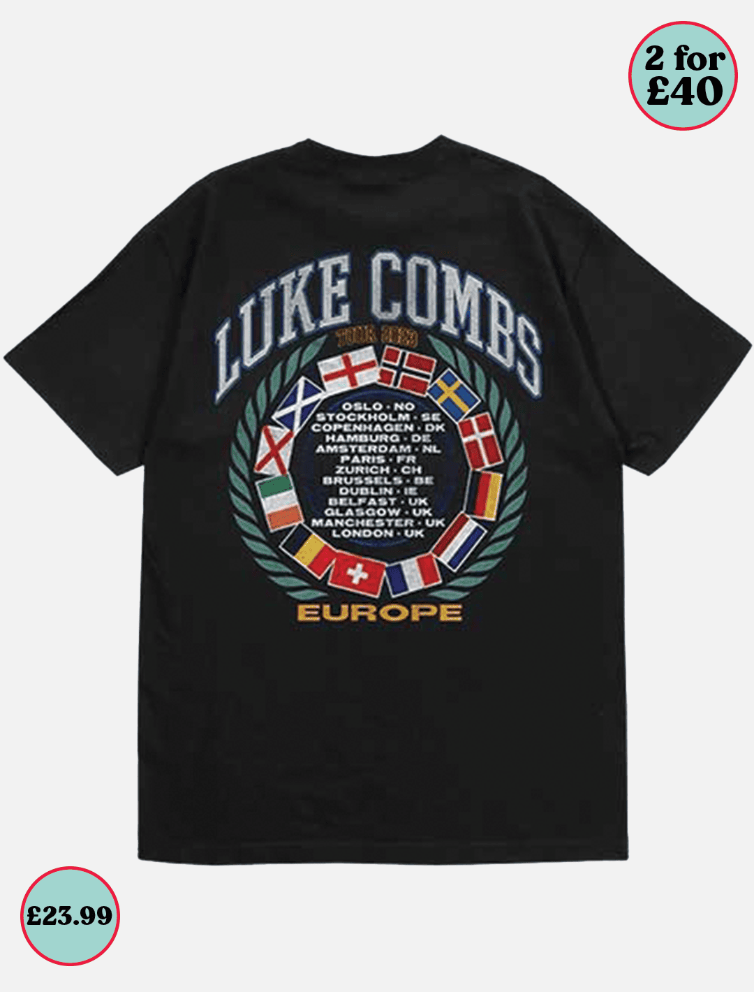 Officially Licensed Luke Combs 100% Cotton T-Shirt in Black. Deal: Buy two Band / Artist T-Shirts for £40.00. Offer automatically applies to your cart.