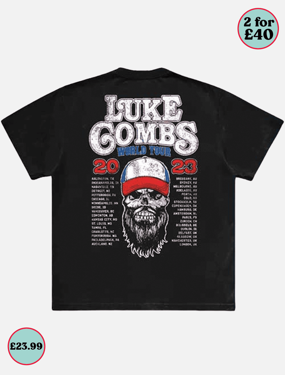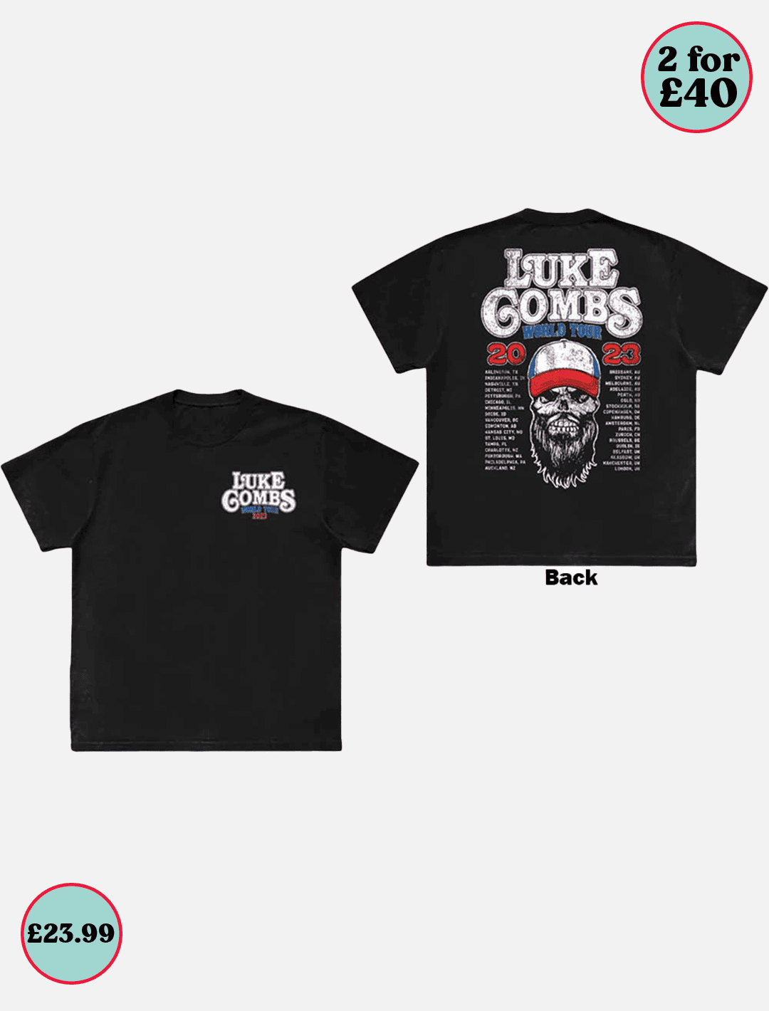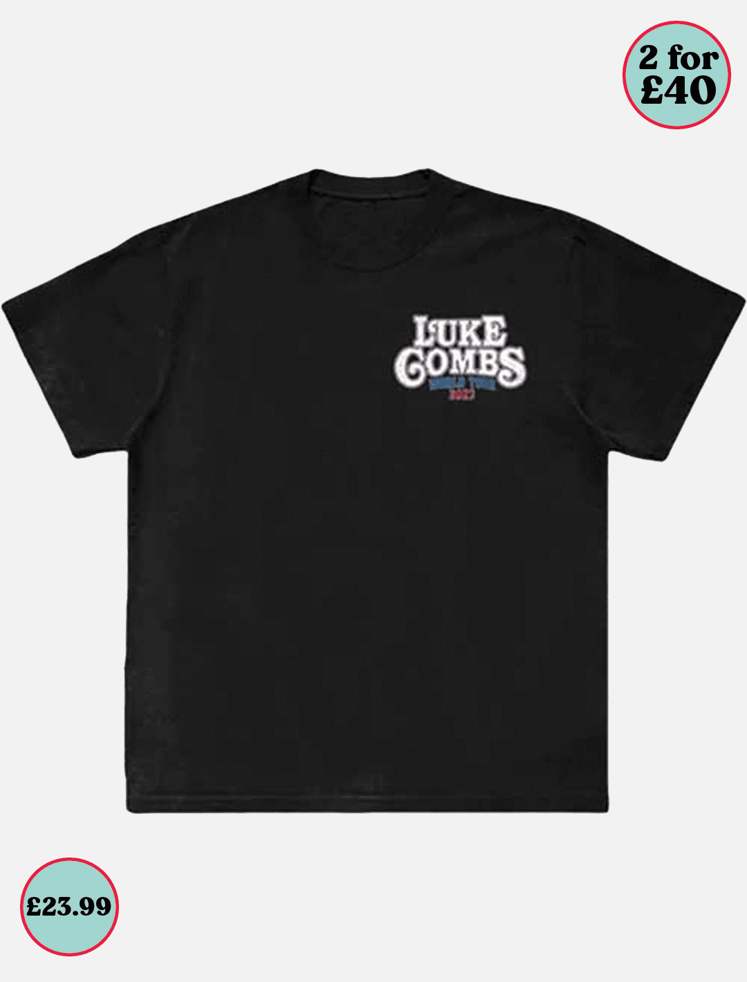 Officially Licensed Luke Combs 100% Cotton T-Shirt in Black. Deal: Buy two Band / Artist T-Shirts for £40.00. Offer automatically applies to your cart.