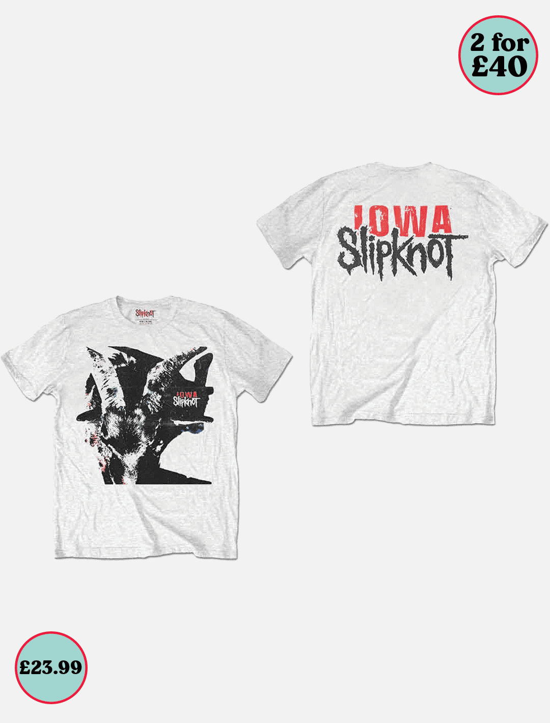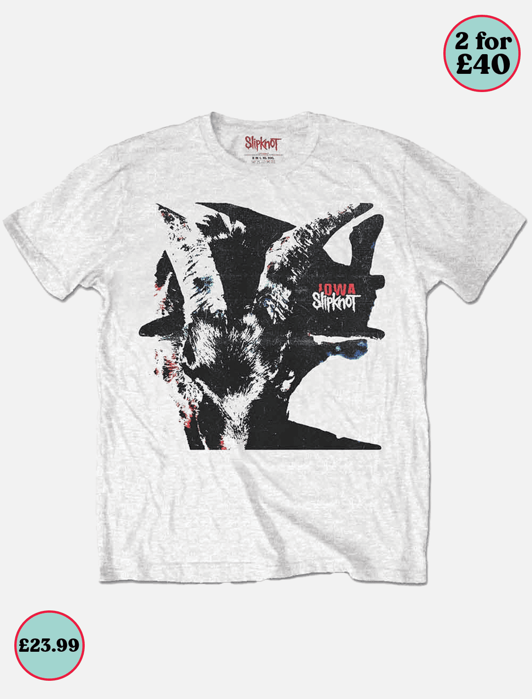 Officially Licensed Slipknot 100% Cotton T-Shirt in White. Deal: Buy two Band / Artist T-Shirts for £40.00. Offer automatically applies to your cart.