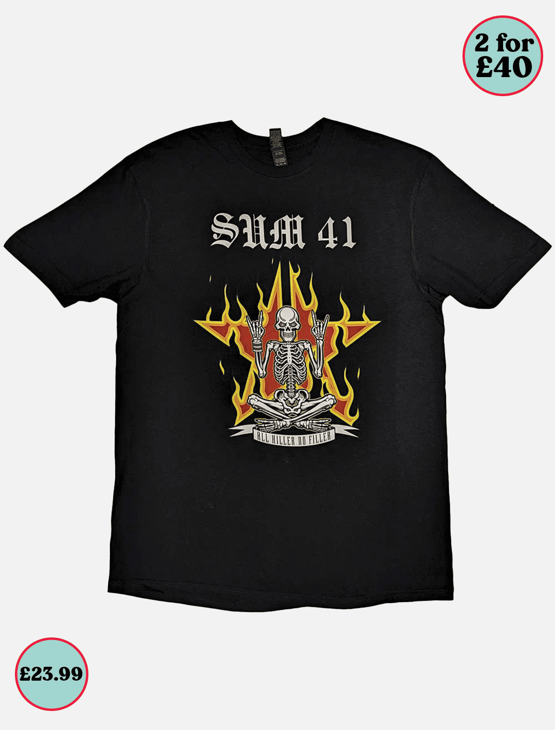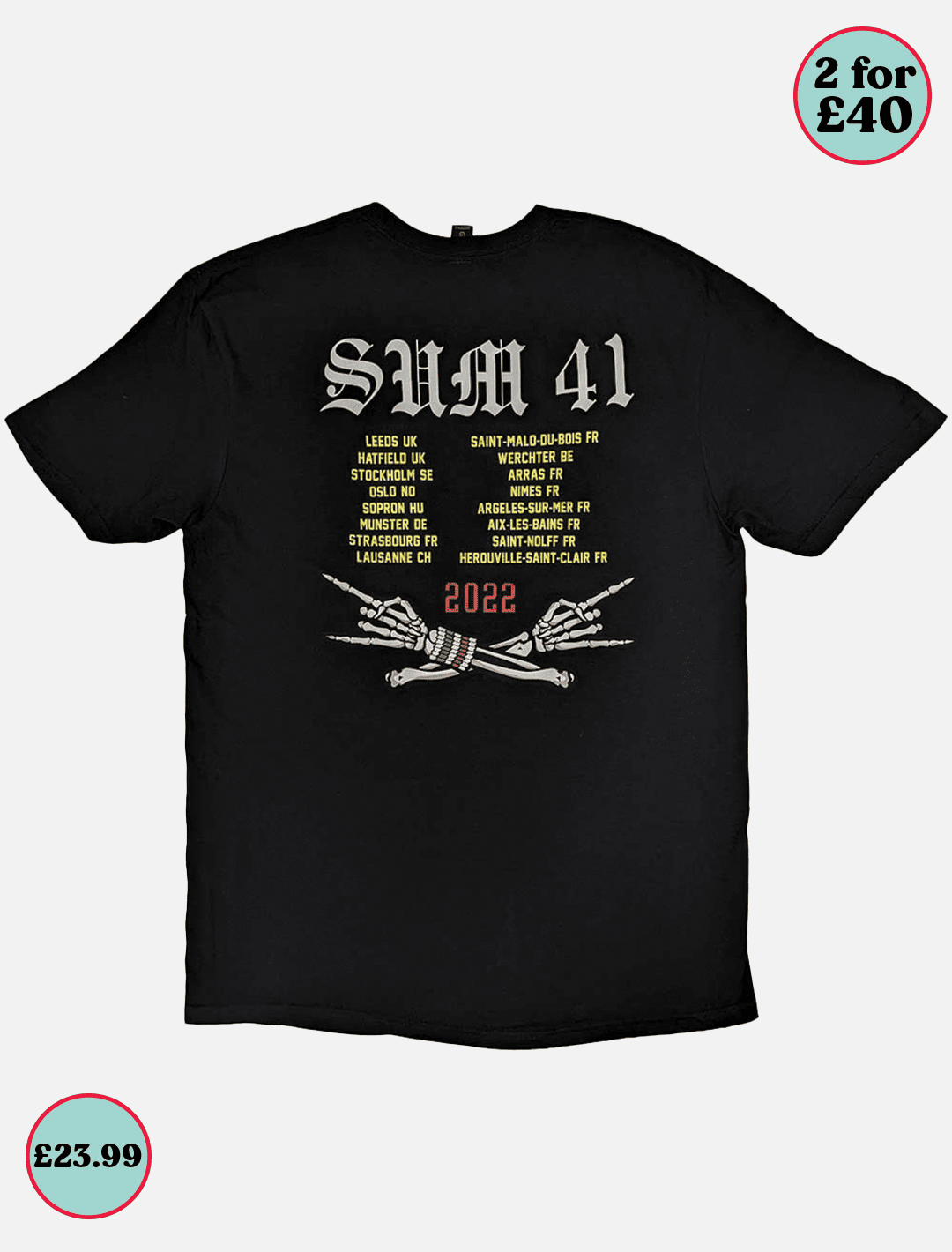 Officially Licensed Sum 41 100% Cotton T-Shirt in Black. Deal: Buy two Band / Artist T-Shirts for £40.00. Offer automatically applies to your cart.