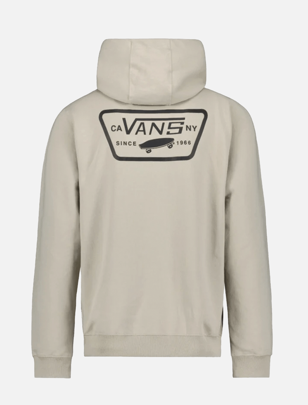 The Full Patched Pullover Hoodie is a 60% cotton, 40% polyester fleece pullover hooded sweatshirt with a front pouch pocket and printed logo graphics at the left chest and back.